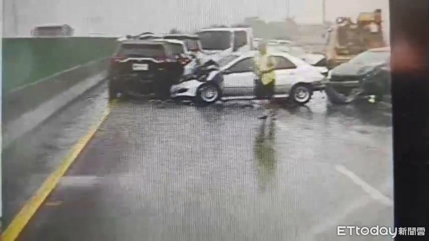 ▲國道一號3日上午發生連環追撞車禍事故。(圖/記者翁伊森翻攝)