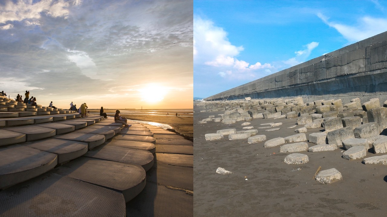 其中最有名的,就是在IG上近年最熱門的打卡景點「魚鱗天梯」,過去這裡是佈滿消波塊的尋常海岸,沒人想到有改變的可能,也沒人想到它也可以是賞海賞夕陽海岸階梯,才短短兩年,就一躍而成台灣西海岸的指標性景點。