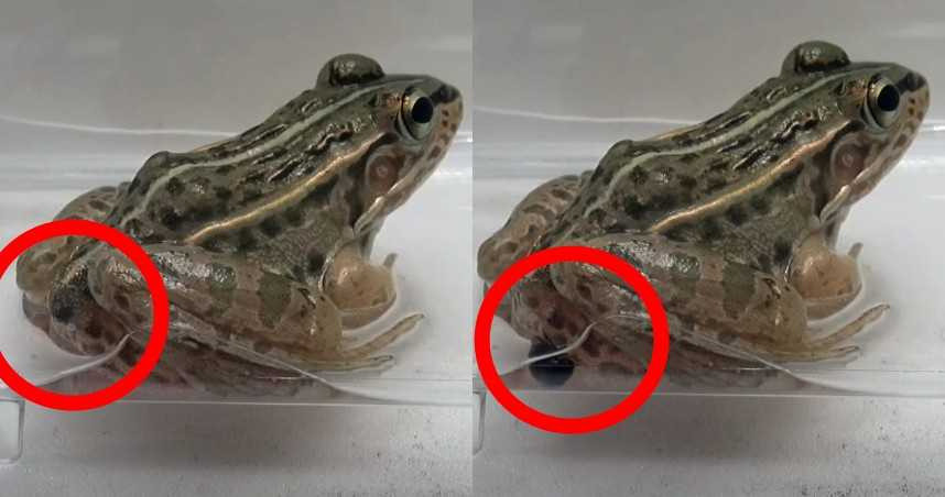 根據《CNN》報導,日本神戶大學生態學家杉浦信二(Shinji Sugiura)研究一種體型嬌小的水生甲蟲,學名為Regimbartiaactivatea,牠在被吞下肚後,試圖刺激青蛙的腸胃道,使其快速蠕動,引發排便反射,這隻水生甲蟲歷經了115分鐘後,抵達消化道終點,自行從青蛙的肛門爬出。