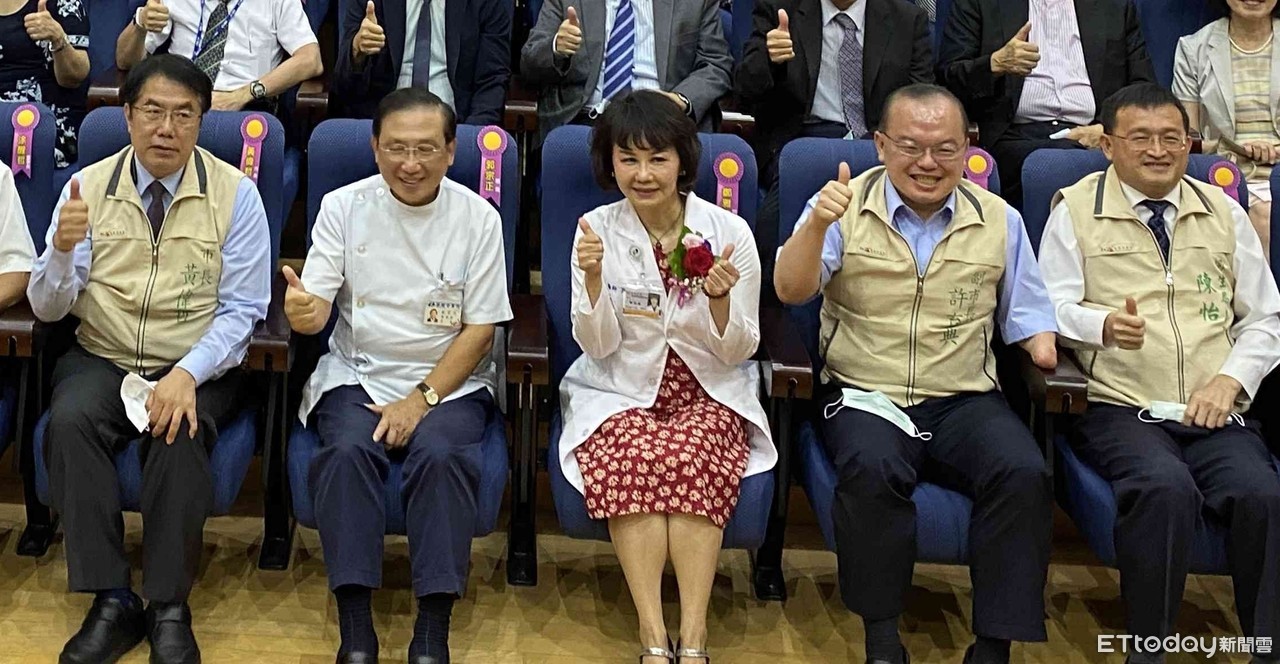 ▲台南市衛生局長陳怡(右一),4日出席妻子鄭雅敏(中)出任台南市區域教學醫院郭綜合醫院新任院長布達就職典禮,2人同框合照無異狀。(圖/記者林悅攝)
