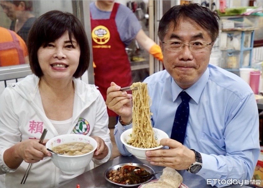 ▲台南「包仔師胚芽意麵」新營創立超過60年,民進黨立委賴惠員、台南市長黃偉哲都掛保證推薦。(圖/記者林悅翻攝)