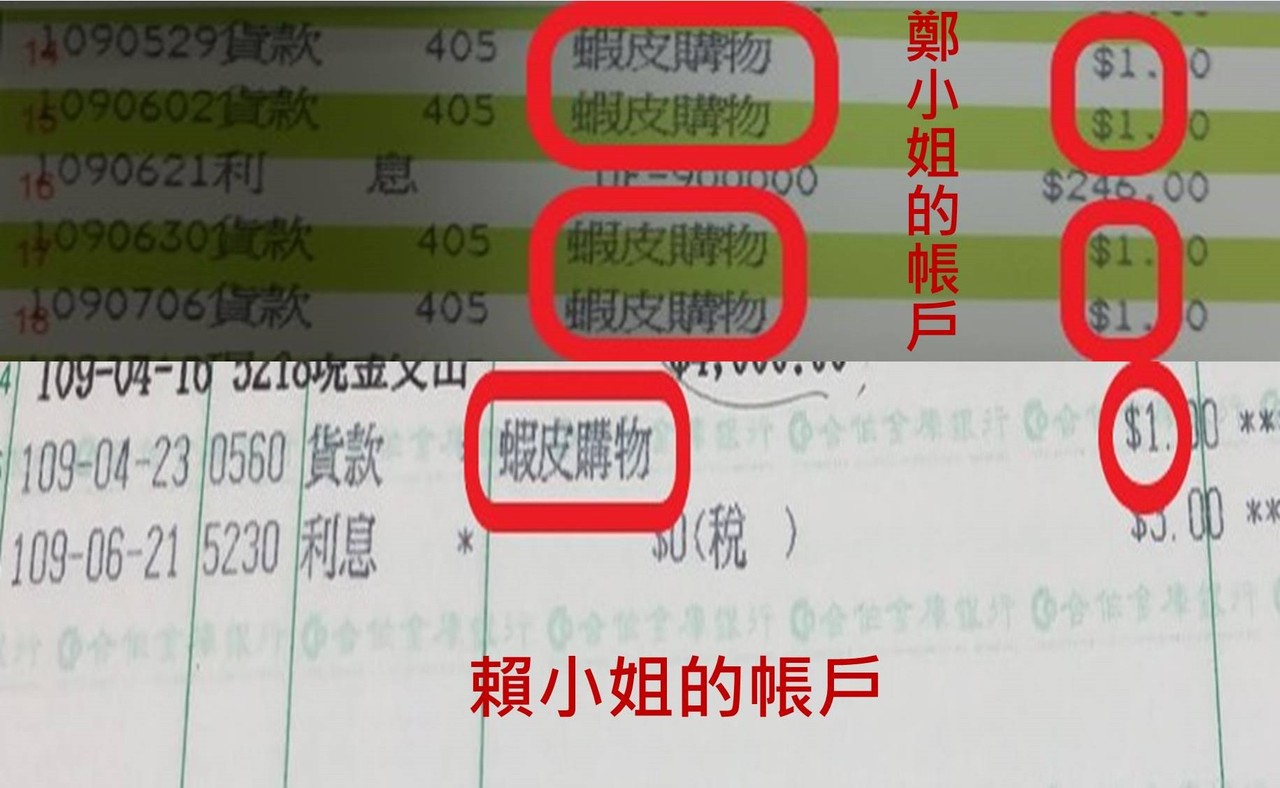 據了解,賴與鄭2名女子均非蝦皮購物的賣家或買家,也從未在蝦皮購物平台購買東西,經上網查詢得知,應是有不法集團以她們的銀行帳戶向蝦皮購物申請「賣家帳號」,蝦皮購物匯進該帳戶1元,目的是驗證該帳戶是否能使用,而這樣的情況,應是其銀行帳戶遭人盜用。