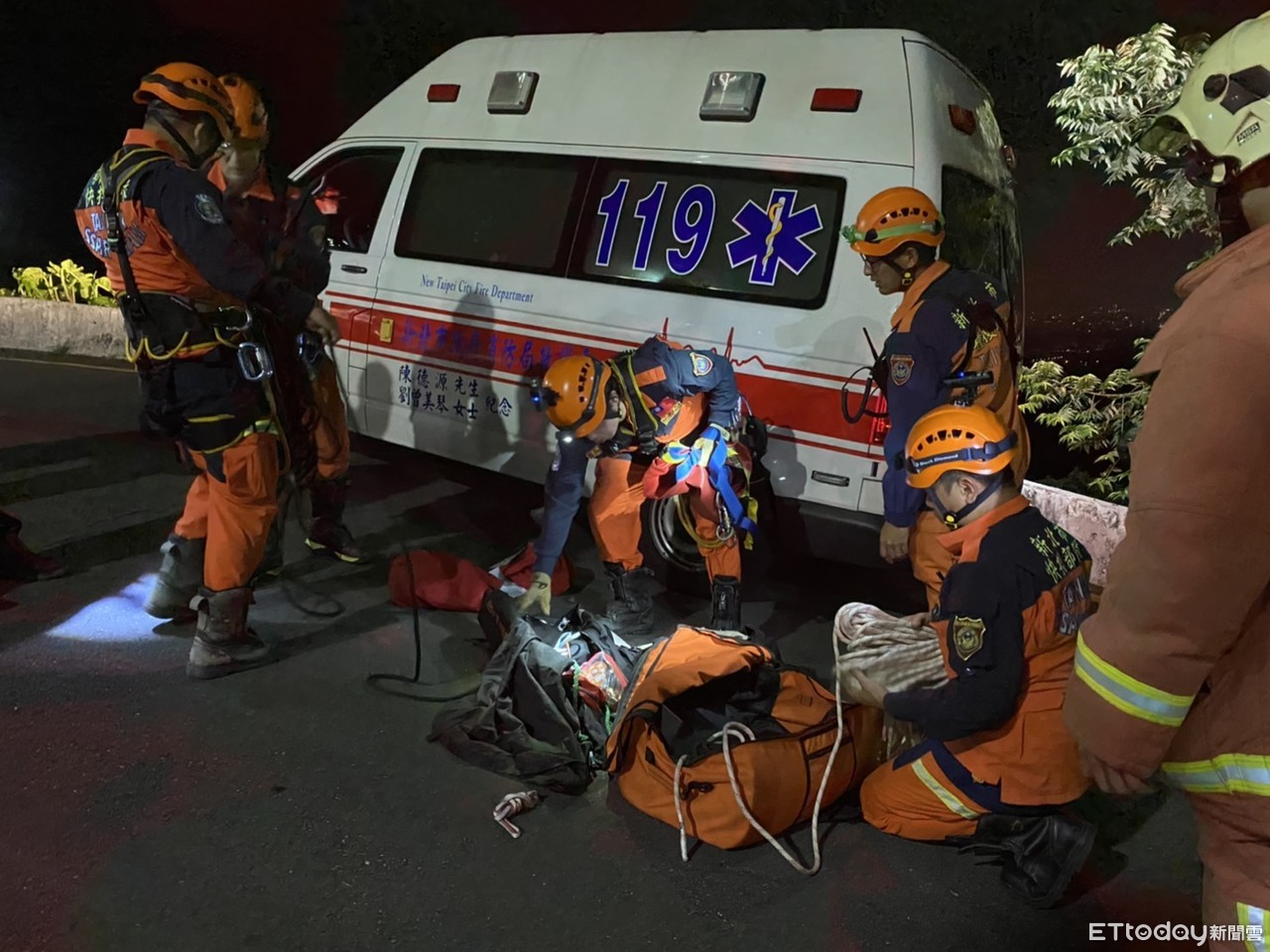 新北市消防局表示,這起騎士墜落山谷意外,總計出動汐止、秀峰分隊共7輛救災救護車屬,出動警義消人員18名,目前已將兩名墜谷的機車騎士成功救起並送往內湖三軍總醫院治療,所幸兩人傷勢並無大礙。