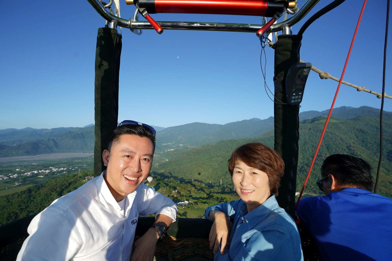 兩位首長今日也在7000多名觀眾見證下,搭乘由全台第一位原住民籍熱氣球飛行員達亥駕駛的「綠巨人」緩緩升空,兩人開心與地上民眾揮手,「離開地球表面」俯瞰台灣之美。
