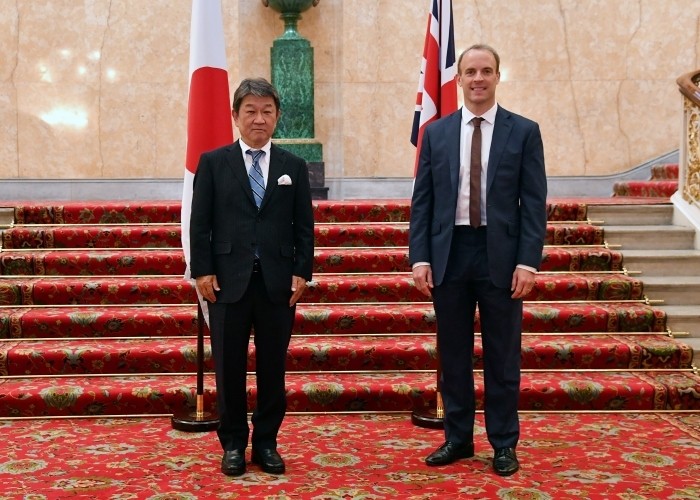 日本外務省表示,茂木敏充此行訪問英國,主要是協商新的貿易協定,但雙方也對中國政府加強對香港的管控交換意見,一致同意將共同保障香港市民及各國公民、企業的權利和自由,並對香港特區政府將立法會議員選舉推遲一年的做法表達關切。
