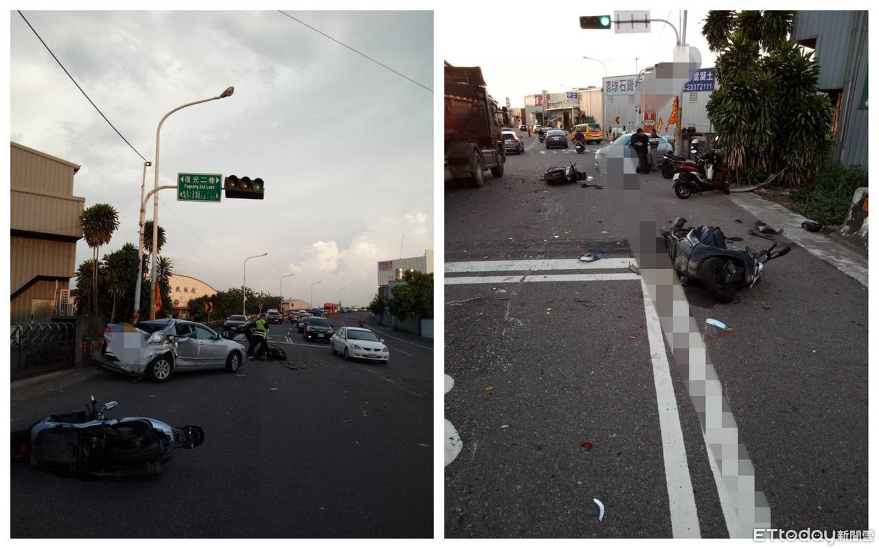 ▲烏日發生貨車煞車失靈,追撞5機車與1輛自小客車。(圖/記者鄧木卿翻攝,下同)