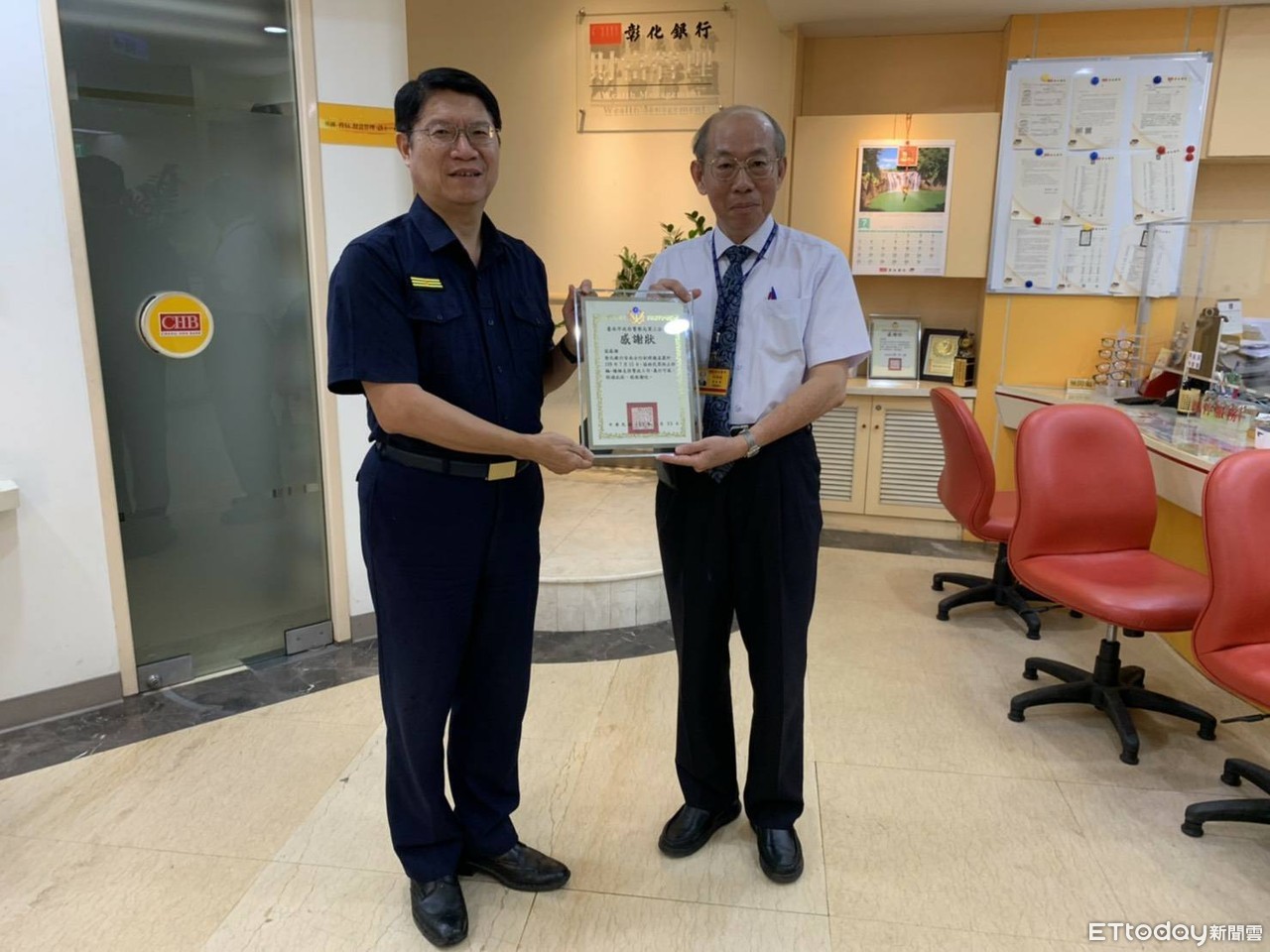 ▲即將屆齡退休的彰化銀行安南分行副理楊孟霖,在短短1年內阻詐5件,共計成功阻詐新台幣176萬多元,市警三分局專程前往頒感謝狀表揚。(圖/記者林悅翻攝,下同)