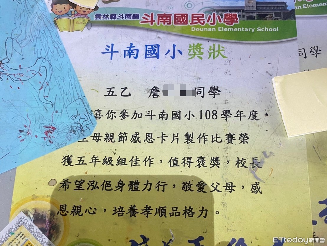 雲林縣斗南鎮一處民宅今(10日)凌晨一場惡火,造成詹姓一家七口1死3命危!其中不幸身亡的詹姓男童,今年11歲就讀斗南國小,暑假結束後即將升上六年級,學業成績表現良好的他,更獲得校長表揚卡片佳作,怎料一場惡火,竟奪走男童性命,令師長感到相當不捨。