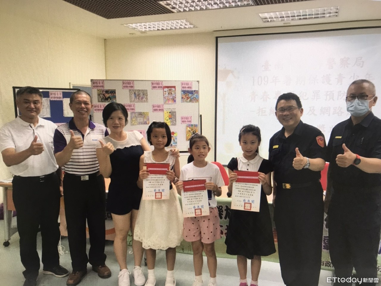 ▲「無毒天地青春活力」、「拒絕網路成癮 健康上網幸福學習」為主題之文宣設計比賽頒獎,由四分局長蔡進閱(右二)及安平國中校長郭憲璋一同主持。(圖/記者林悅翻攝,下同)