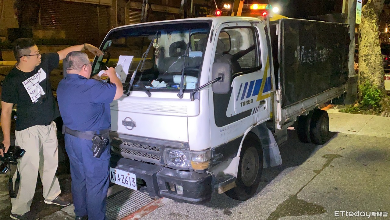 ▲小貨車駕駛倒車撞爛警車後跳車逃逸。(圖/記者游宗樺攝)