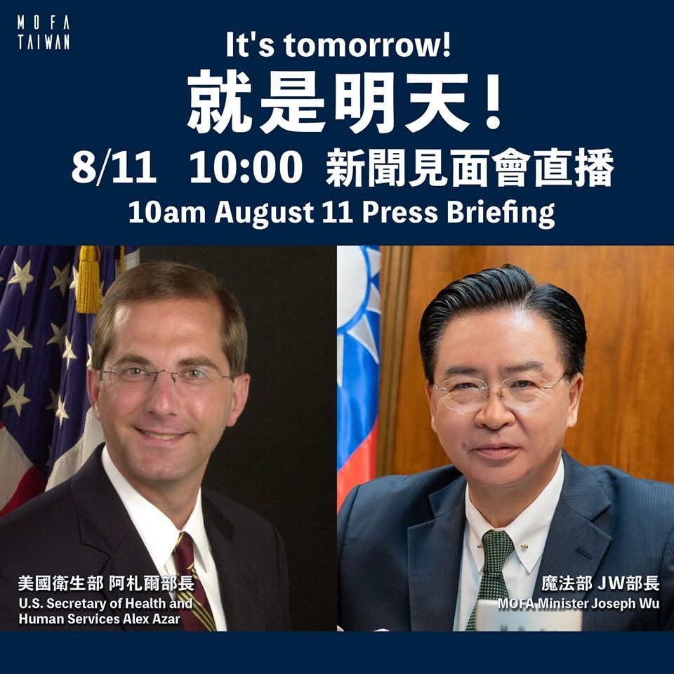 ▲美國衛生部長阿札爾與外交部長吳釗燮上午將展開「台美雙部長會談」。(圖/外交部臉書)