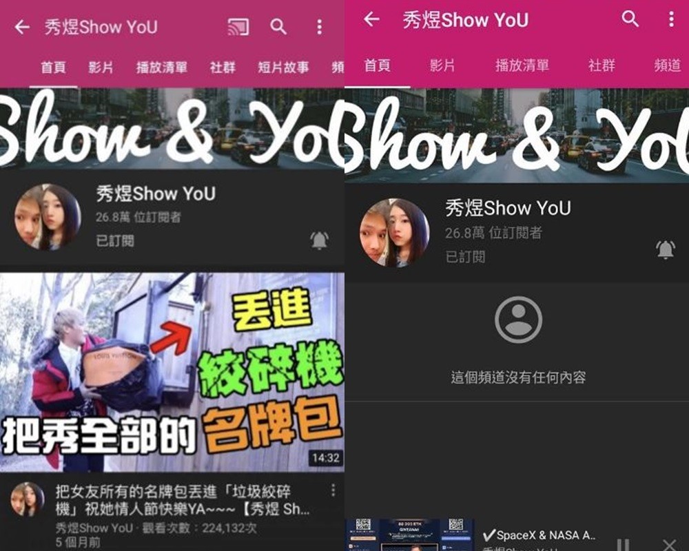 ▲秀煜的頻道影片突然間全部被刪除。(圖/翻攝自Dcard)