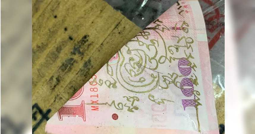 一名網友在臉書社團「爆料公社公開版」PO文表示,自己在回家的路上撿到一張百元紙鈔,沒想到上面竟畫有奇怪的符咒,這名網友因擔心會被詛咒,便將紙鈔放在一旁的騎樓;其他網友看到後,則留言驚呼,「是泰國錢母」。