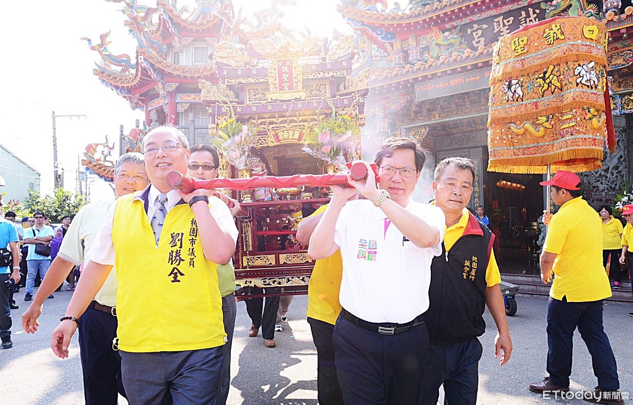 ▲蘆竹誠聖宮「神禧夜巡遶境」活動,市長鄭文燦去年也曾參與舉轎儀式。(圖/記者沈繼昌翻攝)