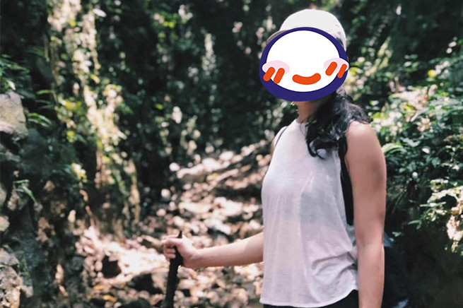 ▲8月2日14:46,小農女(圖)在吳怡農住處待了10小時,離開時穿著深色細肩帶小可愛、頭戴鴨舌帽,與進入時相同。