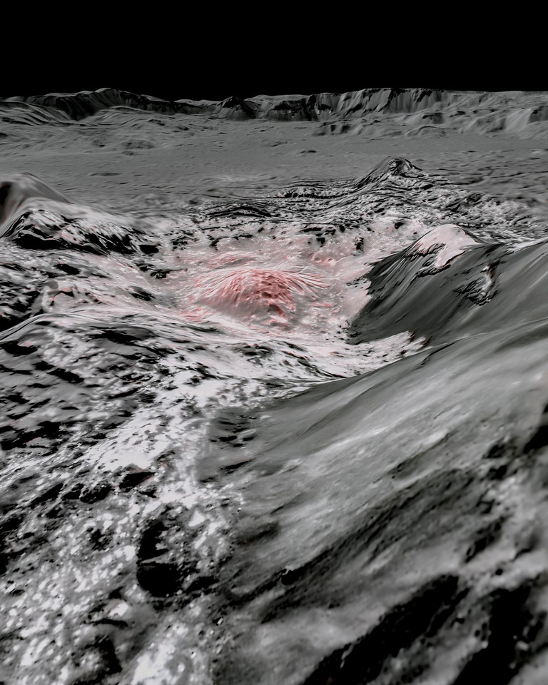 科學家們發現,那些明亮的區域主要是由碳酸鈉(sodium carbonate)構成的沉積物。它們可能來自於滲透至表面並蒸發後的液體所留下的鹽殼。這些鹽殼具有高度反光的特性。