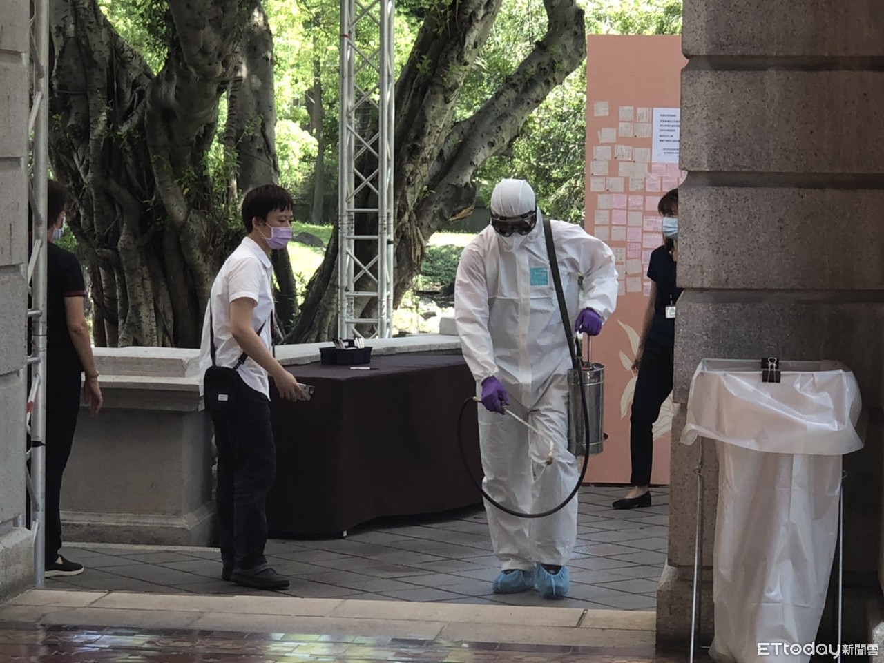 ▲阿札爾12日悼念李登輝,北賓派人進行消毒。(圖/記者陶本和攝,以下皆同)