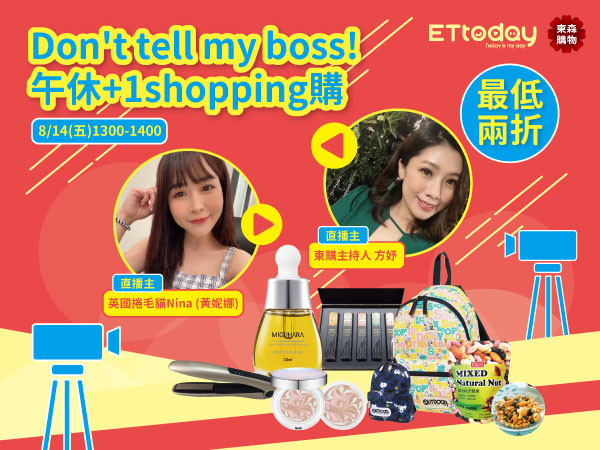 小資女上班族午休時間除了吃便當、追劇,下單買網拍也是必須的。《ETtoday新聞雲》旗下專屬女性購物平台《her和她》推出全新直播購物企劃-《Don't tell my boss! 午休+1 shopping購》。AGE20爆水粉餅、Instyle兩用離子夾、MIGUHARA燈泡安瓶等商品下殺折扣,8月14日下午1點準時在《her和她》及《EHS 東森購物網》FB粉絲團準時同步開搶,讓你看直播配午餐,超狂優惠買好買滿,還有機會獲得神秘小禮喔。