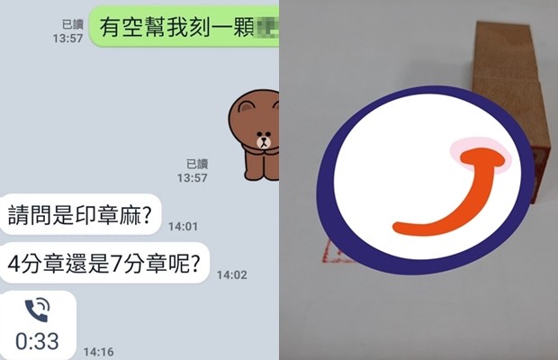 老闆在她的逼問之下,才緩緩道出真相,原來是希望同事幫忙刻一顆「便章」,用的是老闆的姓名,結果用通訊軟體交辦時,不小心把便章打成「便當」,但因為是老闆的要求,員工不敢質疑,所以帶回了一顆刻有「便當」的印章。