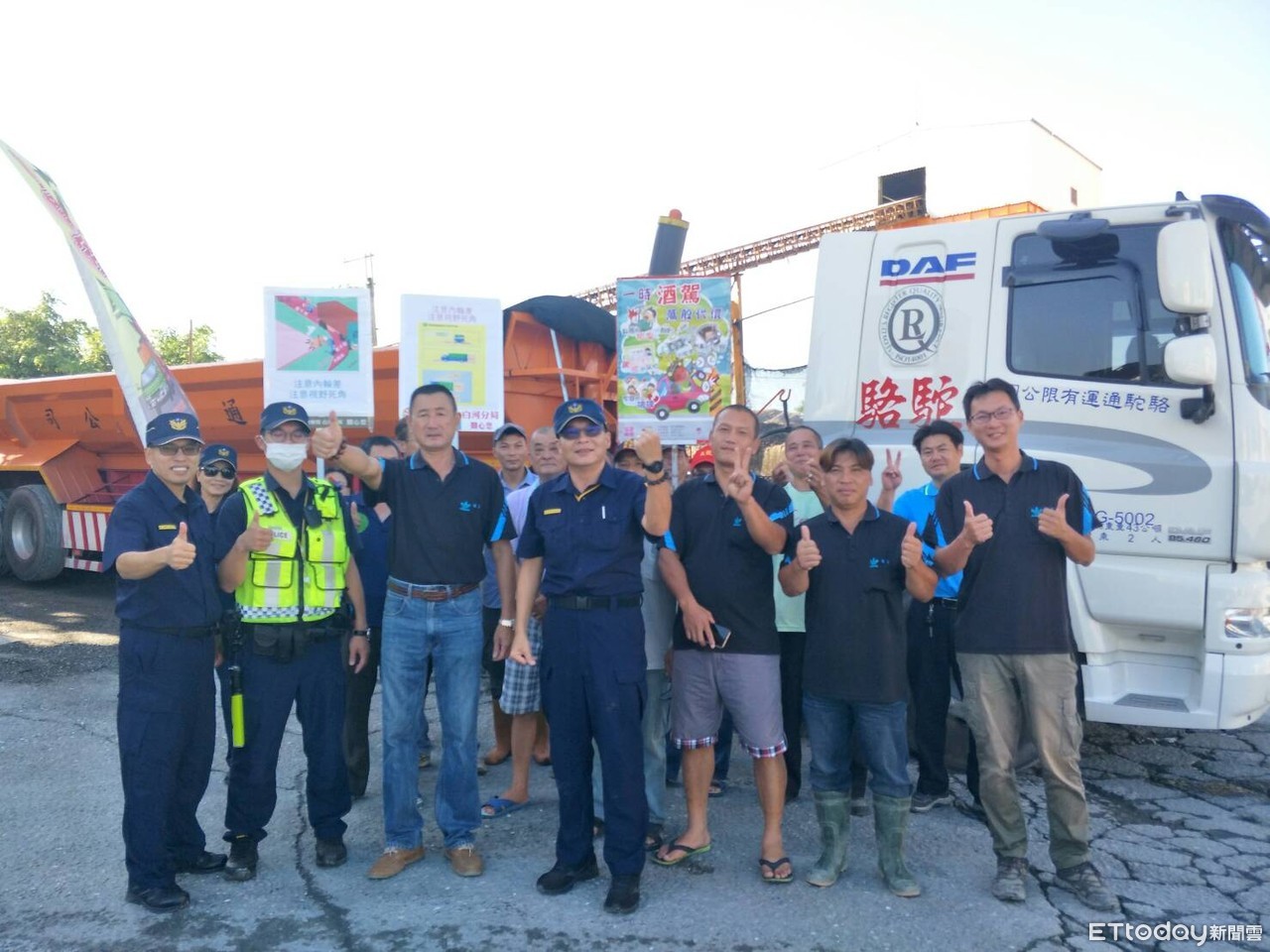 ▲台南市白河分局主動出擊,前往轄內砂石車、大貨車、卡車等大型車及司機聚集的宅急便、混泥土場、貨運行、客運轉運站等處,宣導安全駕駛觀念,共同防制大型車肇事。(圖/記者林悅翻攝,下同)