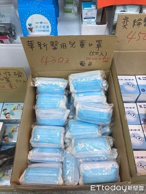 ▲華新平面口罩一盒販售350元。(圖/記者唐詠絮攝)