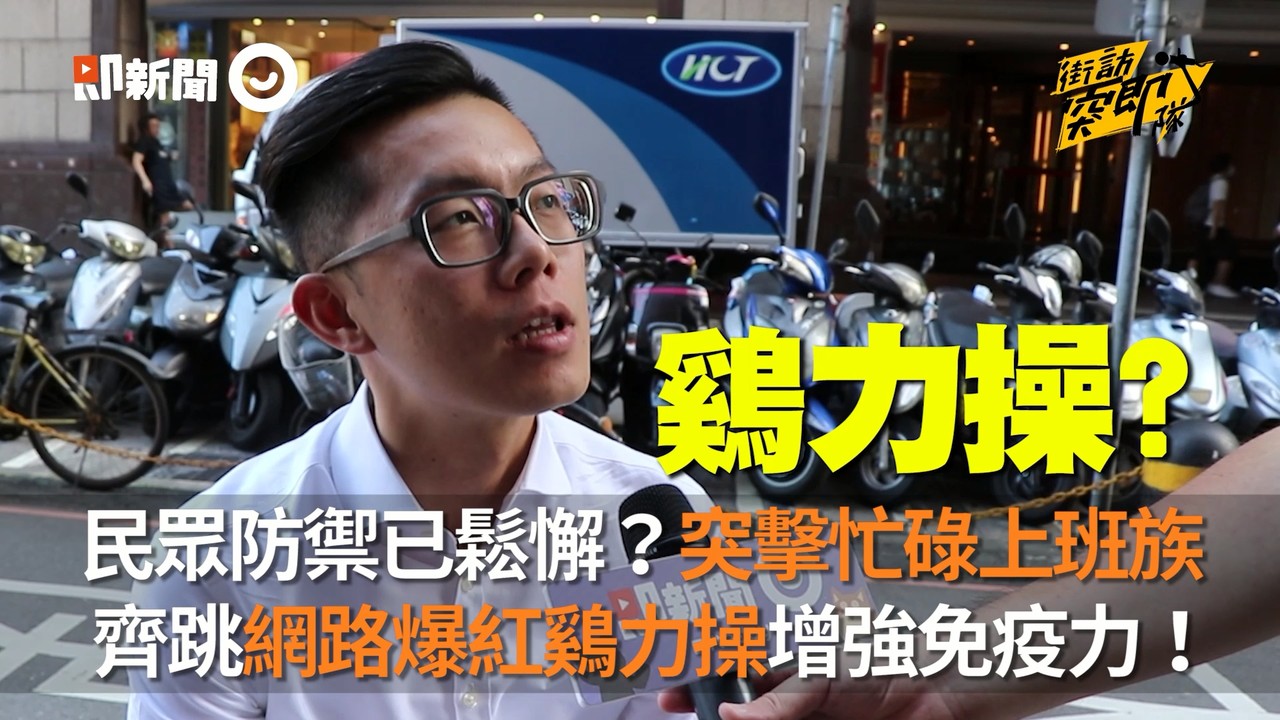 台灣於非常時期全民超前部署,狀況相較其他國家穩定許多,但也讓部分民眾開始鬆懈。ETtoday「街訪突即隊」日前上街關心民眾防護狀態,就發現有不少人把勤洗手和攜帶酒精消毒雙手的習慣拋到腦後,沒保持社交距離再加上熬夜晚睡、愛吃炸物又不運動,民眾免疫力堪憂。「街訪突即隊」立馬邀請受訪者一起動滋動,大跳最近網路許多人響應的「鷄力操」,還加碼免費請受訪者喝鷄精,有國家雙認證的加持,免疫力UP UP,提醒民眾依然要健康面對新生活,不可掉以輕心。