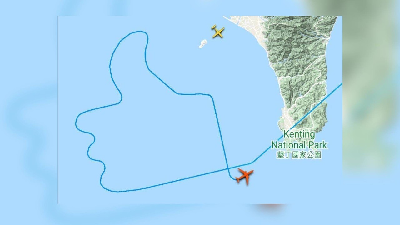 飛機飛行至陽明山與鼻頭角燈塔,飛經日本琉球列島西端與那島國上空,接著沿台灣東部海岸線,行經龜山島、清水斷崖與花東縱谷,再往南至三仙台、綠島、鵝鑾鼻、恆春及小琉球。飛機在恆春外海附近的天空中畫一個「讚」的圖案,之後依原航線北返,預計在下午 1 點 30分抵達桃園機場。