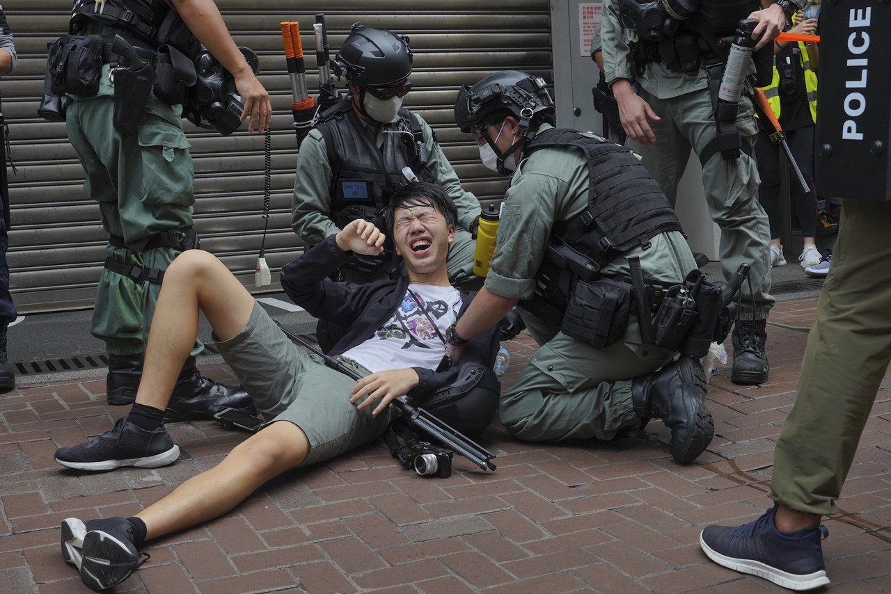 ▲港版國安法生效後,有記者被噴胡椒噴霧。(圖/達志影像/美聯社)