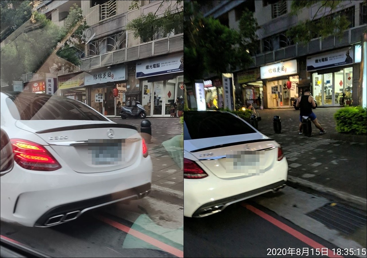 ▲有網友目擊該賓士車停在紅線上,一停就停了45分鐘以上。(圖/翻攝自臉書我是三峽人 iSanxia)
