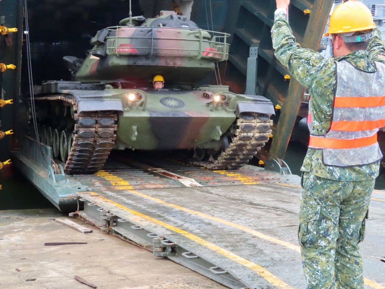 根據軍聞社報導,為協助外離島部隊各類軍品前運作業,陸軍四支部運輸兵群第二營港運連14日於左營地區,編組「艙內卸載」、「艙外裝載」、「指揮與管制」及「勤務支援」等專案人員,執行澎防部戰車及各類軍品前運任務。