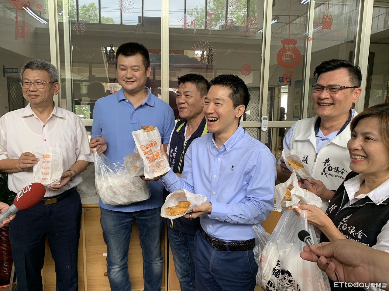 ▲立法委員何志偉兌現諾言,17日於雲林縣虎尾警分局發2百份雞排。(圖/記者蔡佩旻攝)