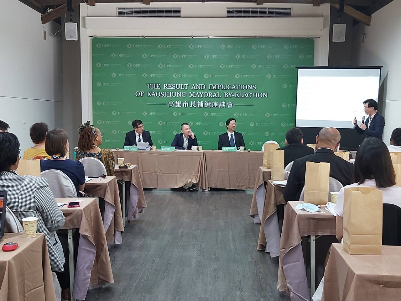▼民進黨國際部主任羅致政舉行座談會,分析高雄市長補選。(圖/民進黨國際部提供)
