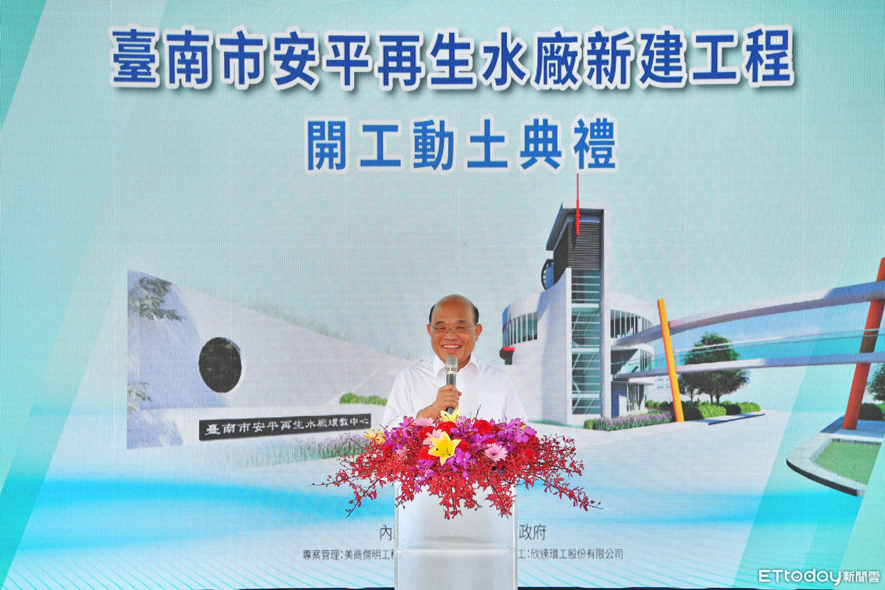 行政院長蘇貞昌18日出席「台南市安平再生水廠新建工程動土典禮」時表示,「水」是重要物資,滴滴都珍貴,政府不僅要清淤水庫,也要有效利用水資源,讓「有限變無限」,運用科技把污水再生成有用的水。