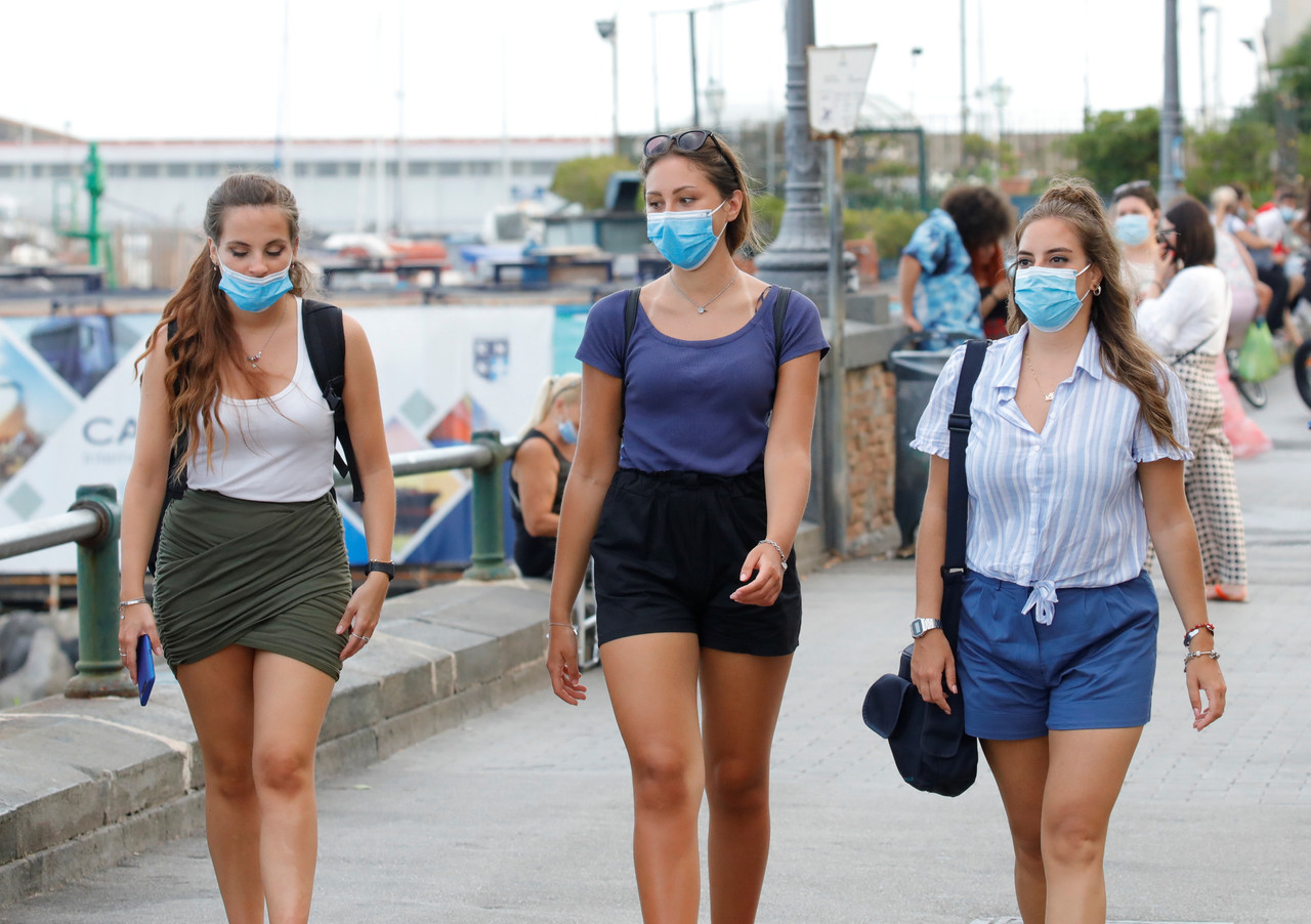 ▲義大利那不勒斯年輕民眾外出配戴口罩。(圖/路透)