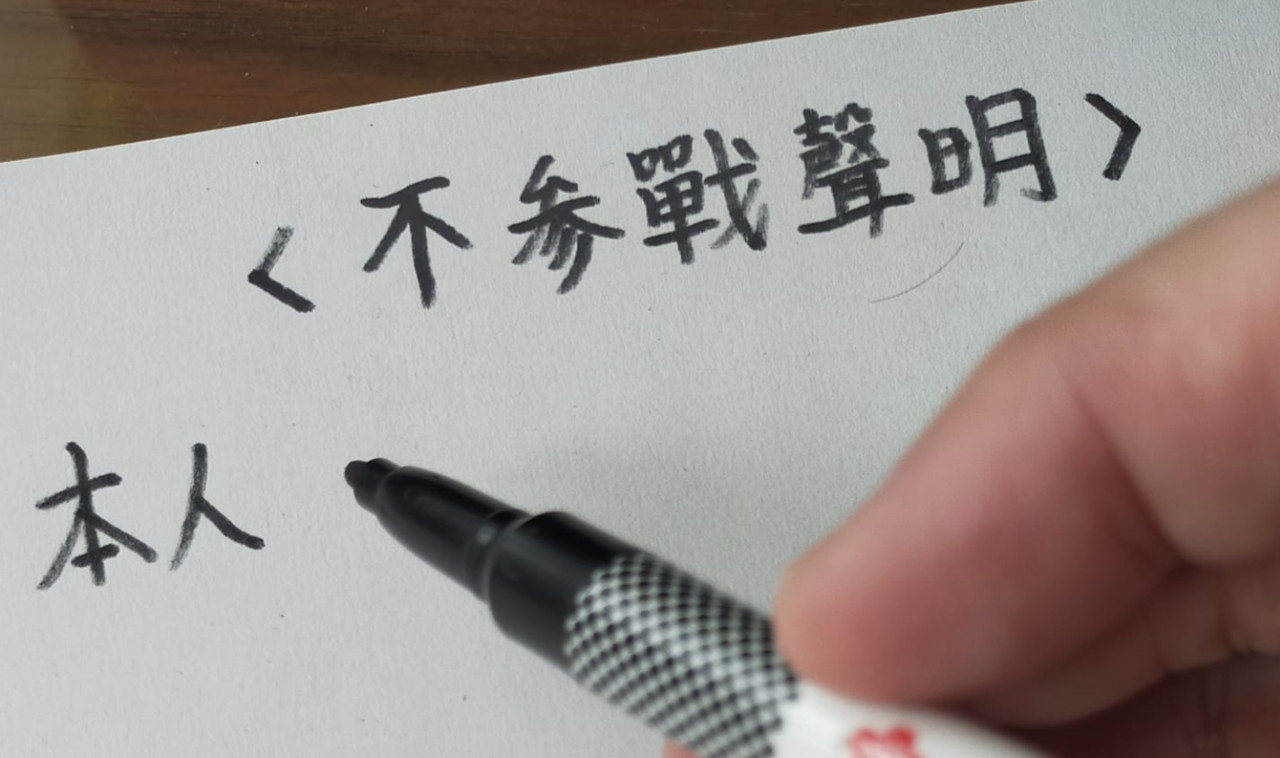 最後,黃文博再次鄭重聲明,「當台海發生軍事衝突,戰爭來時,我拒絕參戰。」
