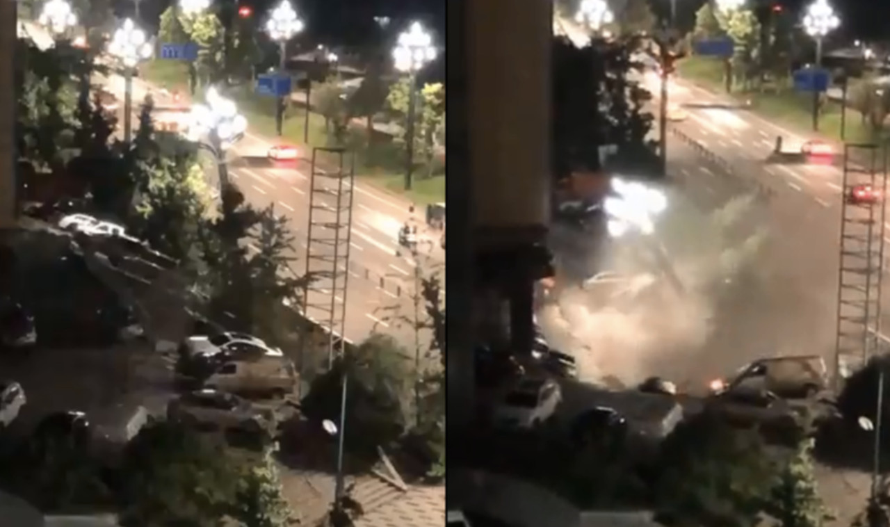 從監視畫面中可以發現,崩塌發生在凌晨12點多,之前完全沒有任何徵兆,一旁的馬路上還能看到零星車輛行經,接著路樹與路燈突然倒下,地面出現巨大坑洞,停放在旁的多輛汽車也接連墜入坑洞,揚起大量的粉塵。