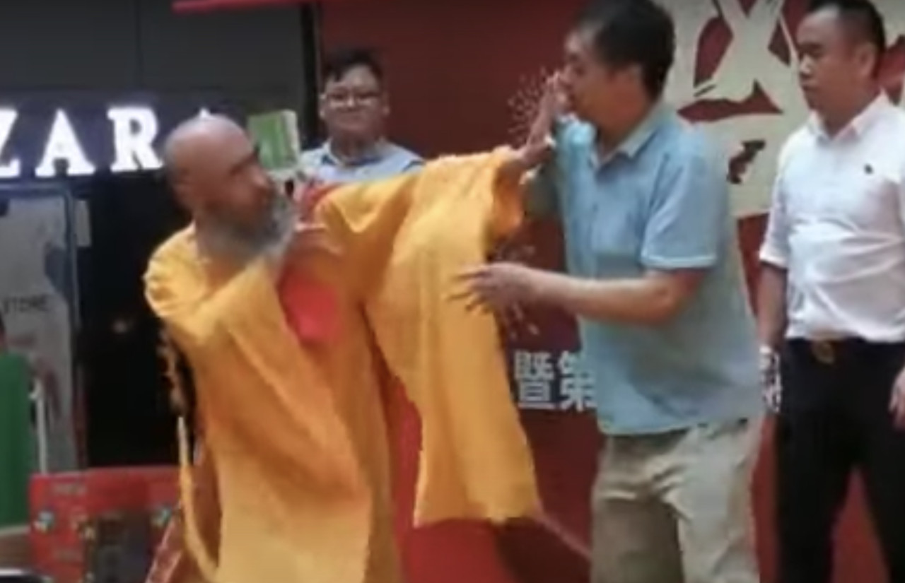 ▼「袈裟老衲」用如來神掌對付馬保國。(圖/翻攝微博)