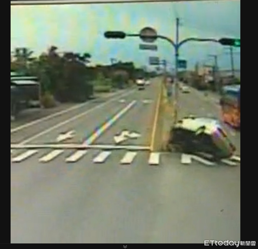 駕駛表示,載著家人從海生館欲返回高雄途中,途經車禍現場,因體力不繼,自撞中央分隔島後翻覆。