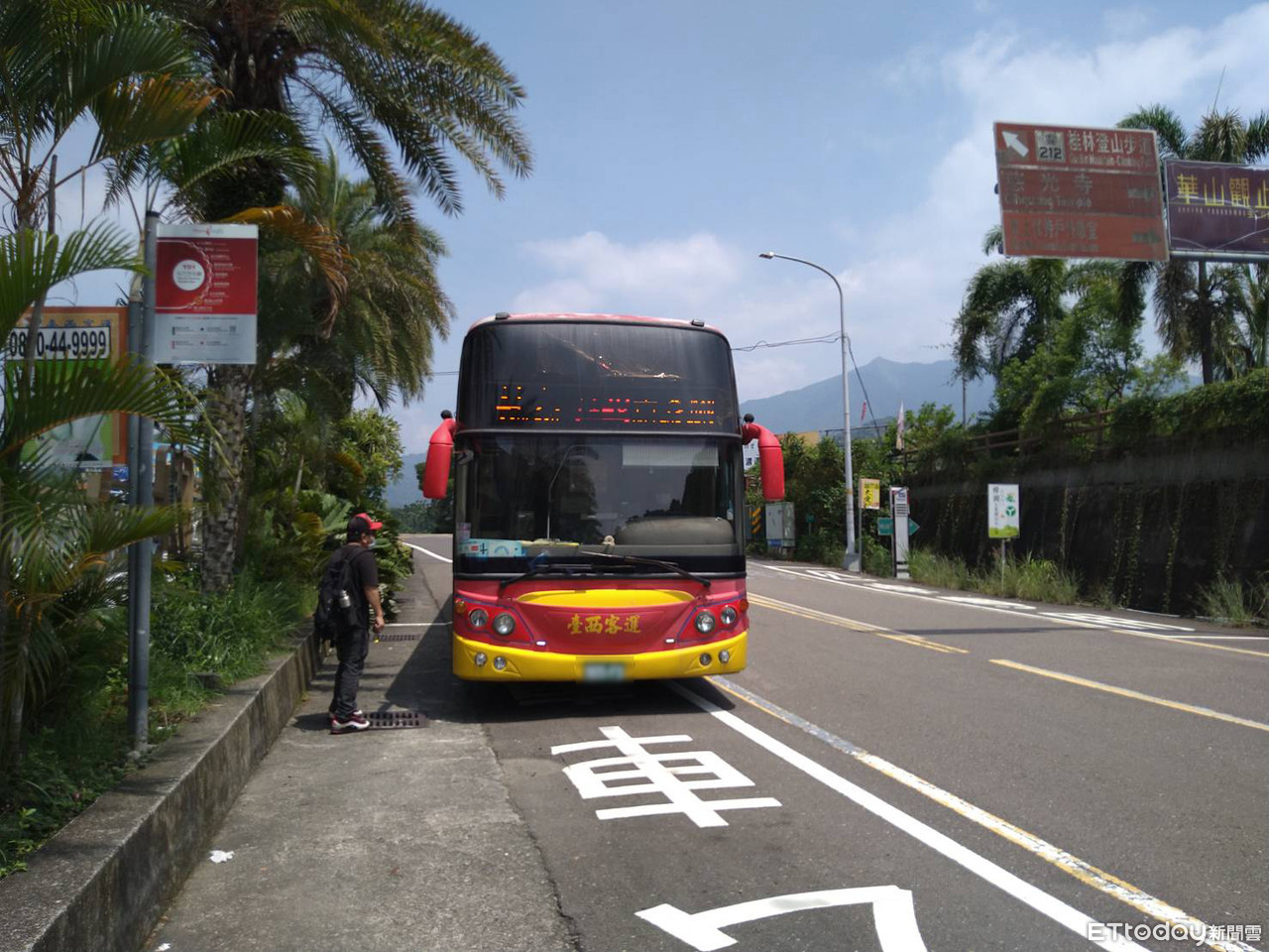 ▲劍湖山渡假飯店外的公車招呼站卻相當的簡陋且不顯眼,緊鄰車道的設置更是危險。(圖/記者蔡佩旻翻攝)