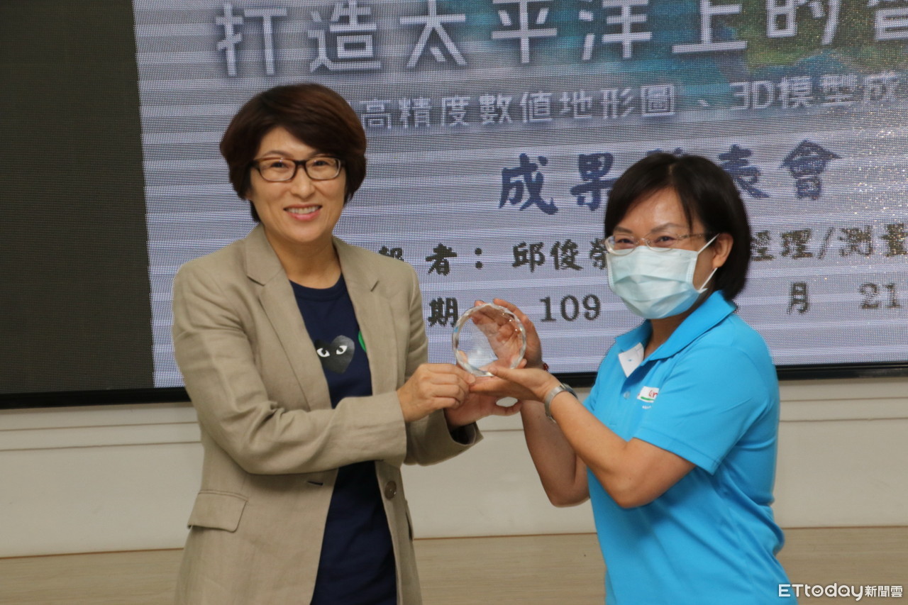 成果發表會於今天上午10點在縣府大禮堂舉行,台東縣府地政處長沈碧恕並呈獻「鐳射水晶內雕蘭嶼立體地形模型」給縣長饒慶鈴及原民會。