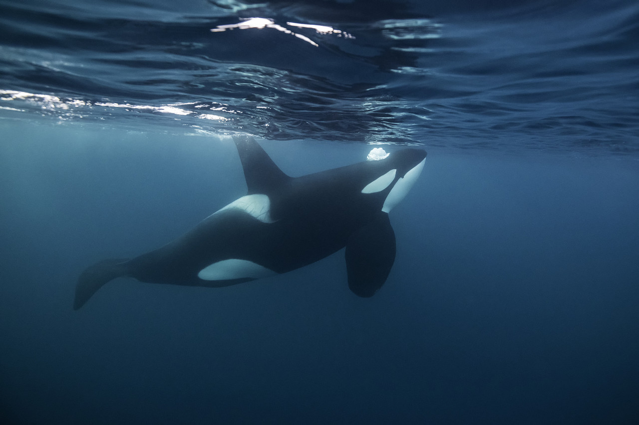 隨後這隻雄虎鯨帶著另一隻母虎鯨,進到水下進行覓食的動作。安德魯看見這個場景之後,立即設法調整船的方向離開,一直到行程結束後他才驚覺,當時的畫面已經被他用相機記錄下來。安德魯說,這個場面令人嘆為觀止,船上每個人也都感到十分訝異,很少能夠看到虎鯨會用尾巴做出這樣的行動,當時虎鯨兒子跟媽媽一直在岩石跟海草中間尋找海豹,所以船停止了前進,不久後就看到雄虎鯨突然翻身,尾巴高高翹起,一隻海豹就這樣被拋到空中,震驚了整船的人。