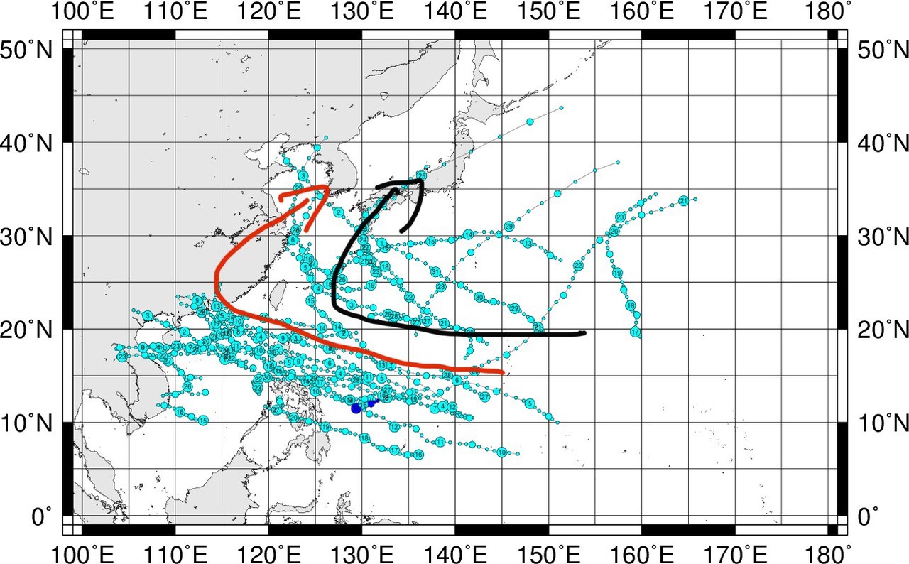 賈新興受訪指出,今年8個颱風生成,沒有一個颱風有真正登陸台灣,不過,颱風路徑若要侵台,最主要關鍵就在於當時的太平洋高壓強弱。若高壓偏弱,颱風在東部外海時,就容易在台灣附近轉彎去日本、韓國;若高壓偏強,颱風則容易從菲律賓東邊到呂宋島附近通過,也不容易影響台灣。