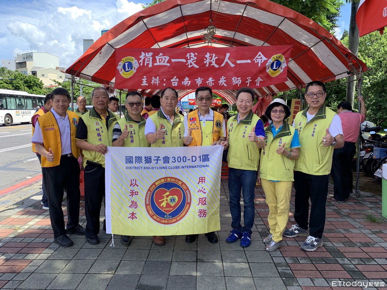 ▲赤嵌獅子會舉辦捐血活動,號召民眾一起挽袖捐血,第七專區主席石榮源及14分區主席王伯群率員支援。(圖/記者林悅翻攝,下同)