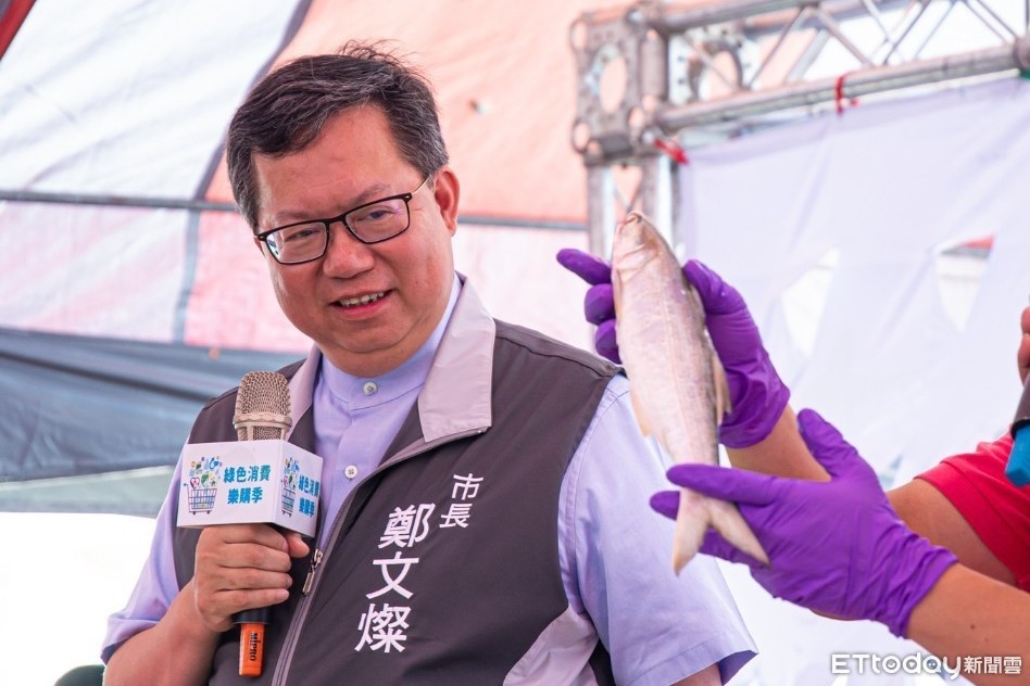 桃園市長鄭文燦今天上午至竹圍漁港參加109年綠色消費樂購季暨航空噪音防制宣導活動,會後接受媒體聯訪。
