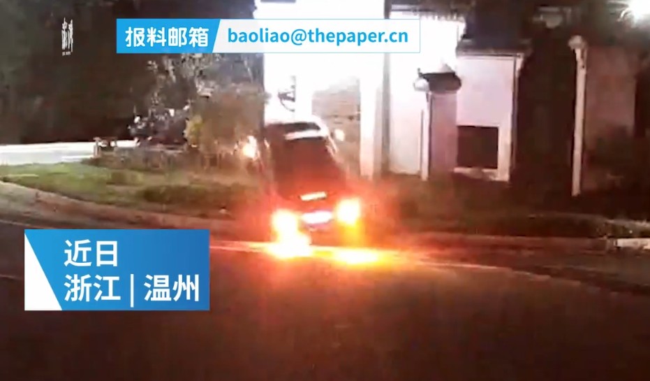 ▲老婆開車載著老公失控衝撞路邊。(圖/翻攝自澎湃新聞,下同)