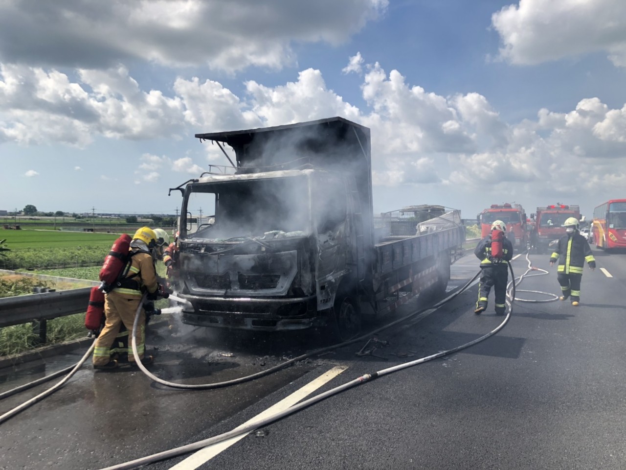 第三公路警察大隊組長張弘杰指出,許男駕駛載運包覆家具用泡棉大貨車,疑似因為車輛滲漏柴油,車輛起火燃燒停於外側路肩,14時16分消防隊抵達現場灌救後車頭全燬,燒得只剩骨架。