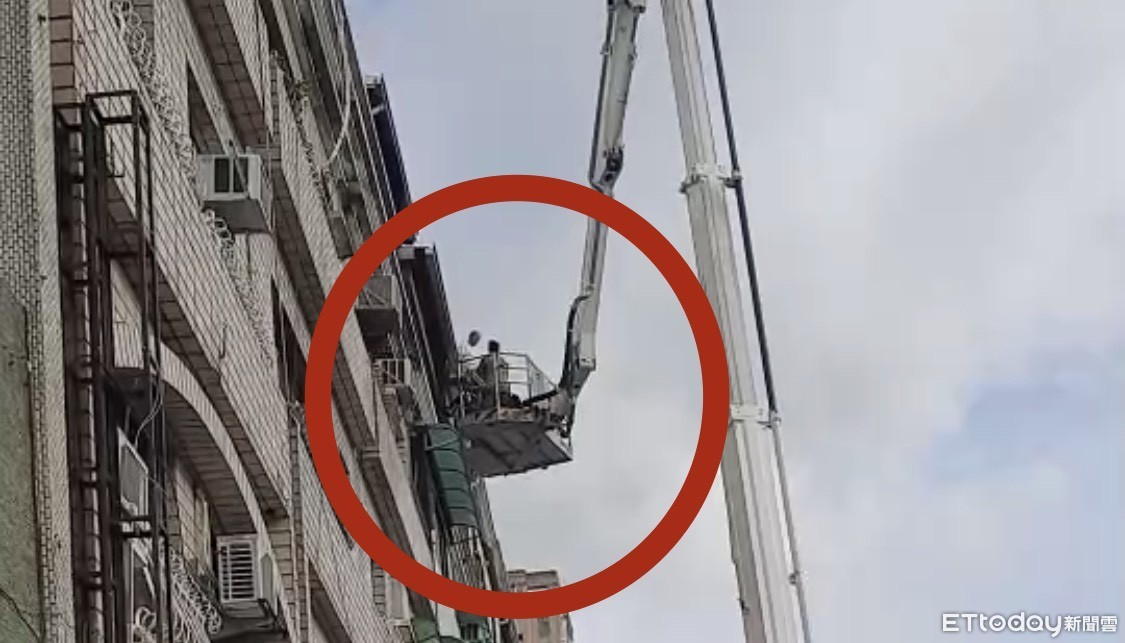 ▲台南市1名老翁疑久病厭世尋短,消防局出動雲梯車將他救下,未釀憾事。(圖/記者林悅翻攝)
