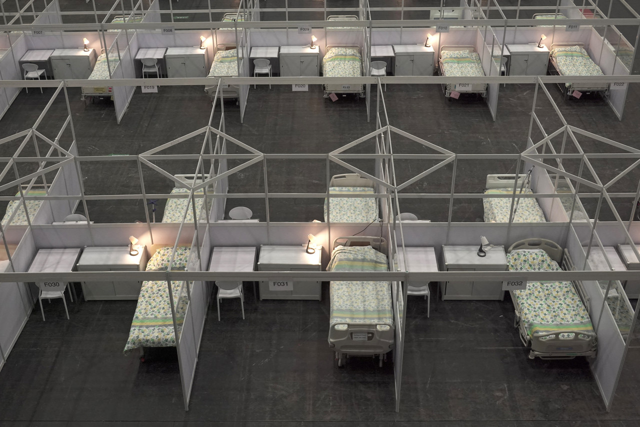 ▲香港在亞博館設立港版方艙醫院。(圖/路透社)