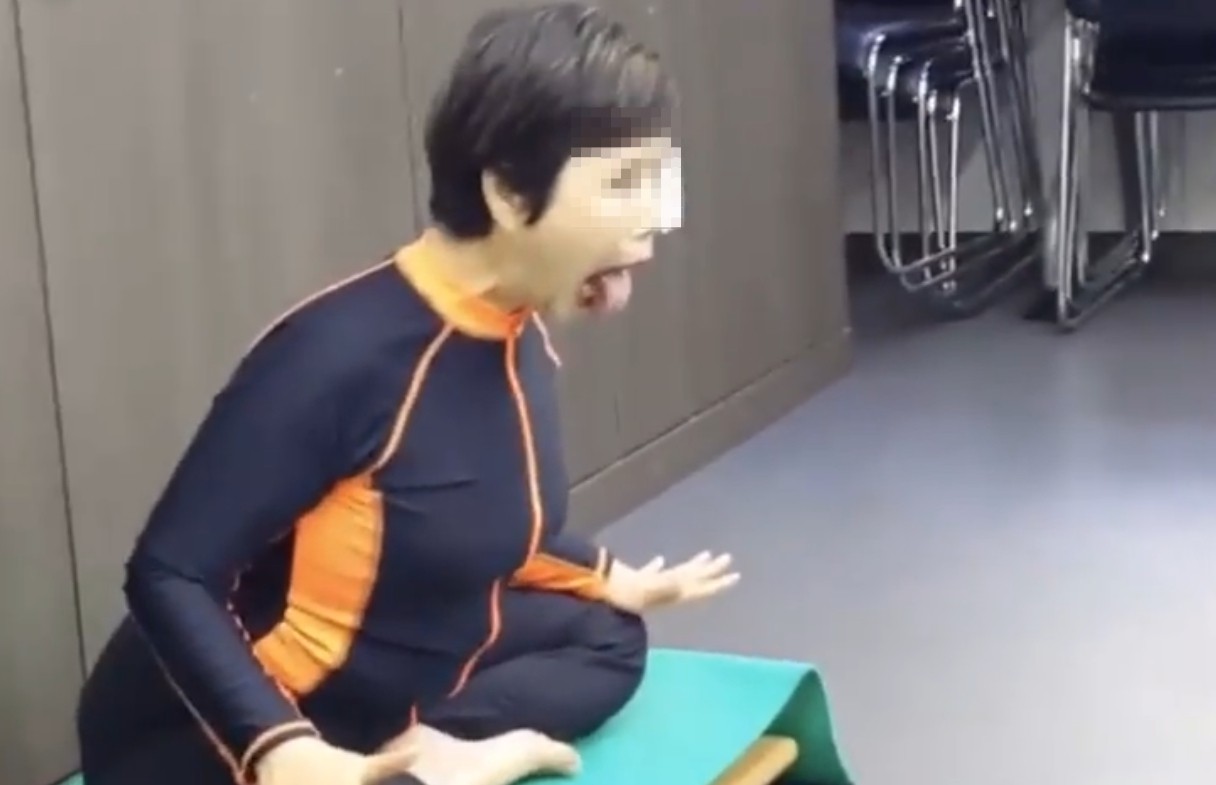 ▲影片中老師的動作看似誇張又有點好笑,但在「艾揚格瑜珈」當中的確有這一招。(圖/翻攝自臉書爆廢公社)
