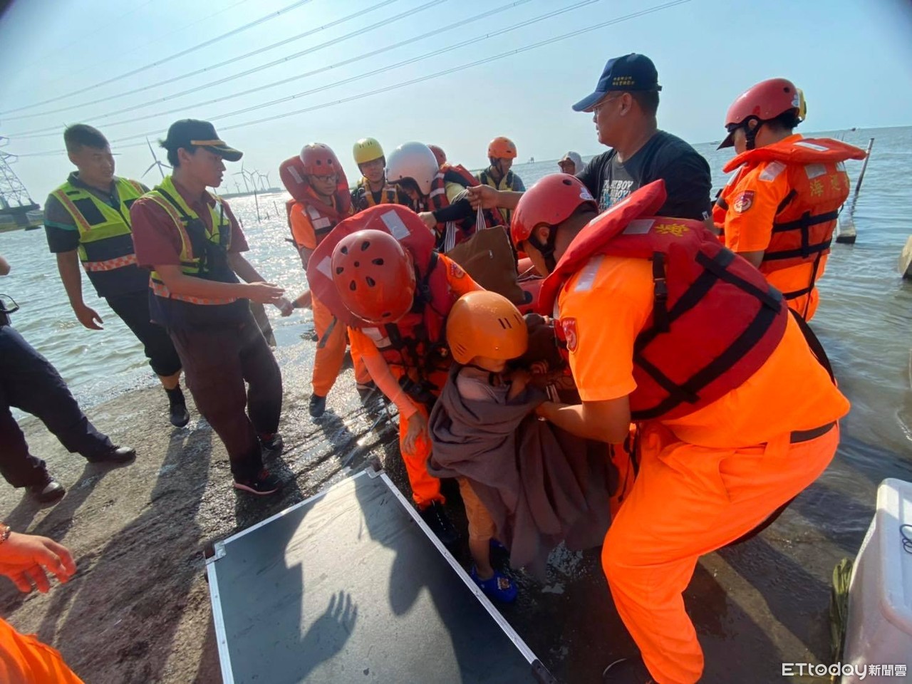 開心出遊的同時,還是要注意漲潮時間。35歲洪姓女子今(25)日帶著3歲男童至伸港鄉曾家村出海口玩水,但疑似沒有注意到時間,海水瞬間湧入導致母子倆受困。警消獲報後,緊急出動橡皮艇前往搶救,所幸無人受傷。